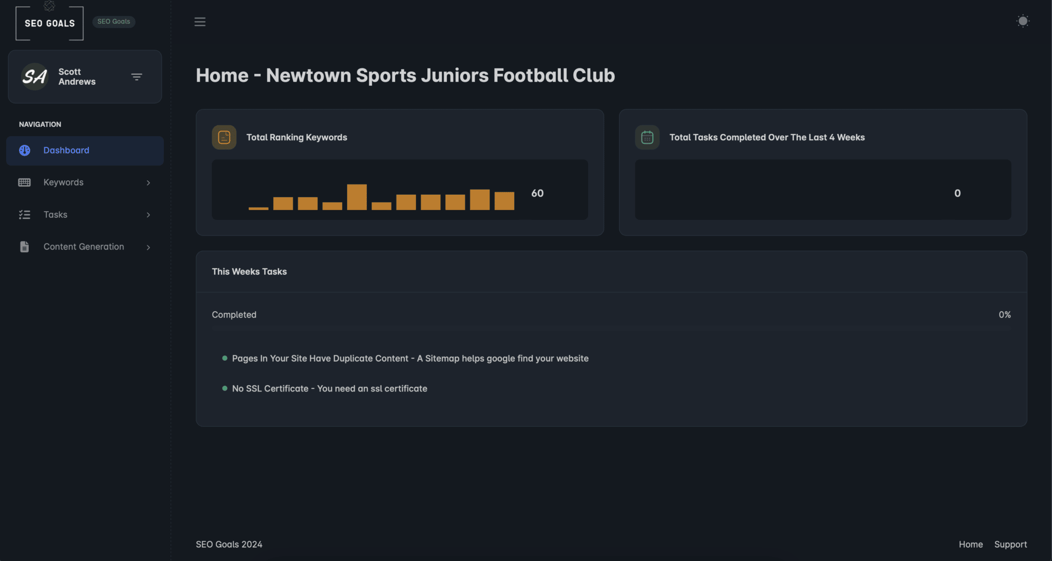 SEO Goals is the one tool you need to supercharge your search engine rankings. We crawl your site and find improvements that you can make, holding your hand through each step of the way.